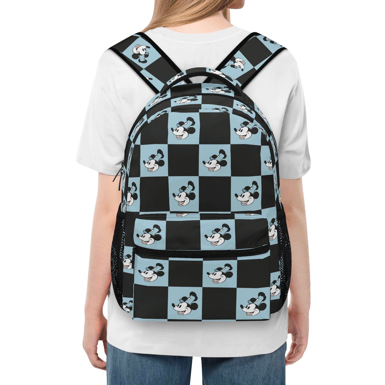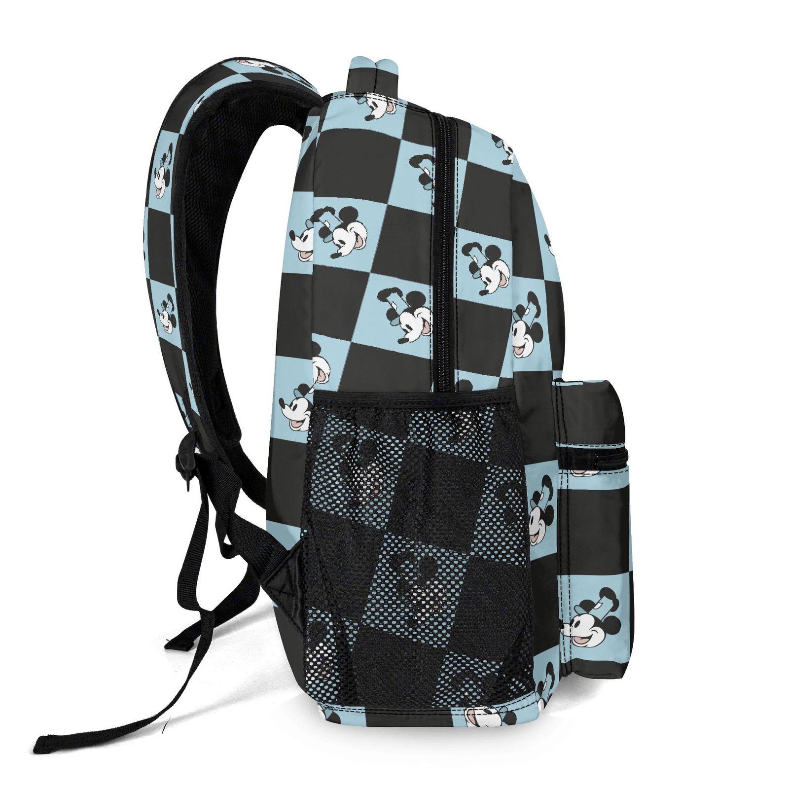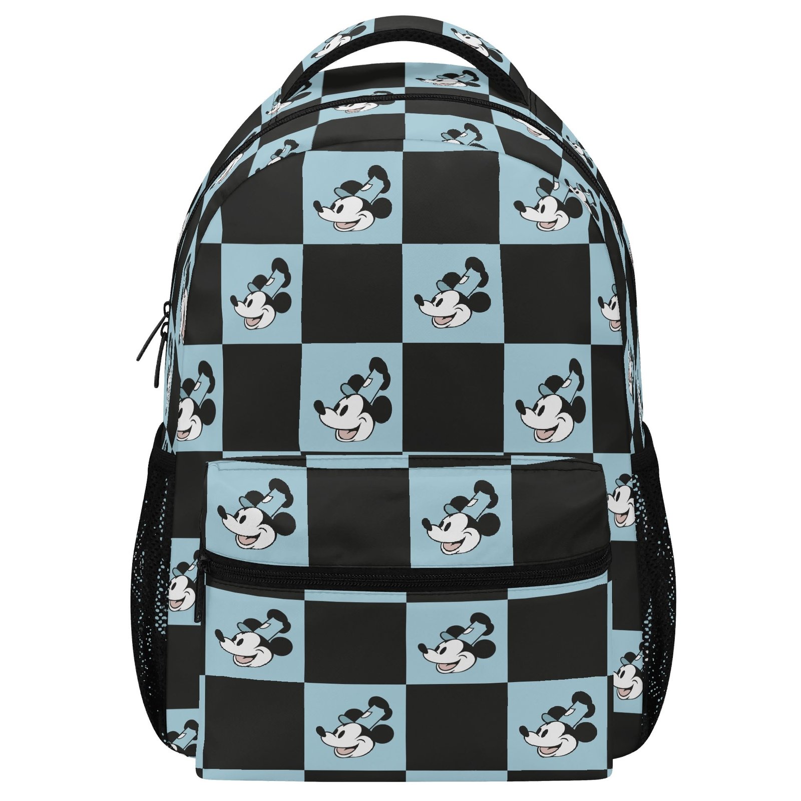 15 Inch Steamboat Willie Backpack in Blue and Black Checker