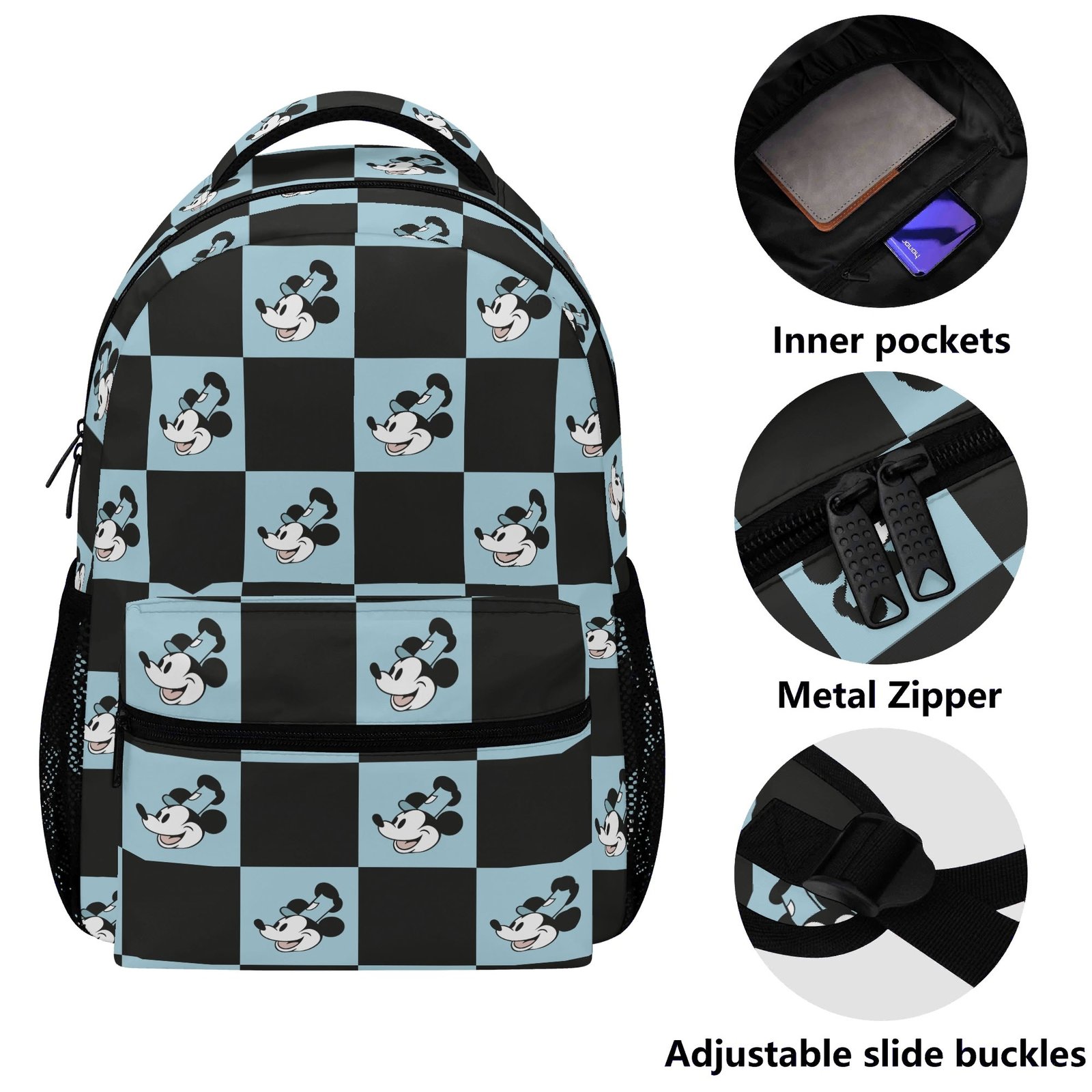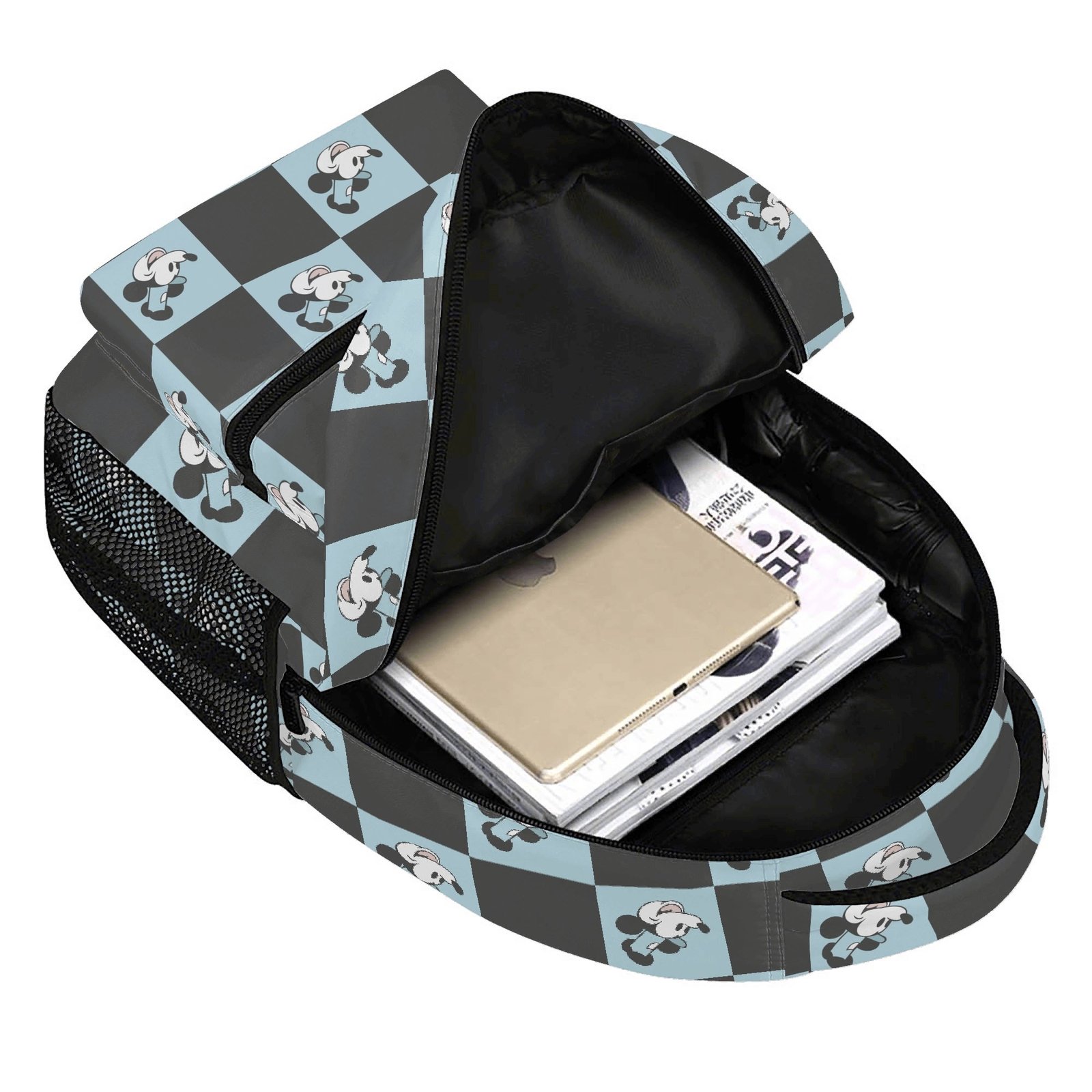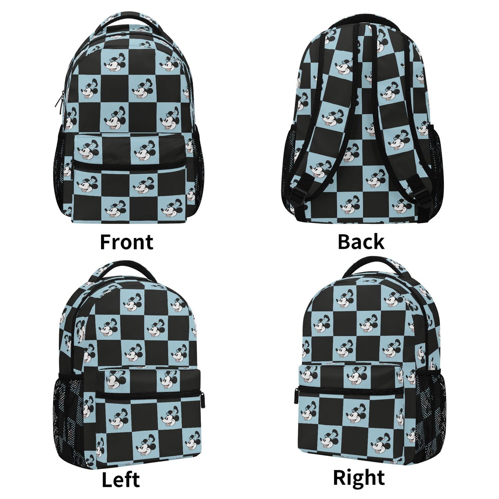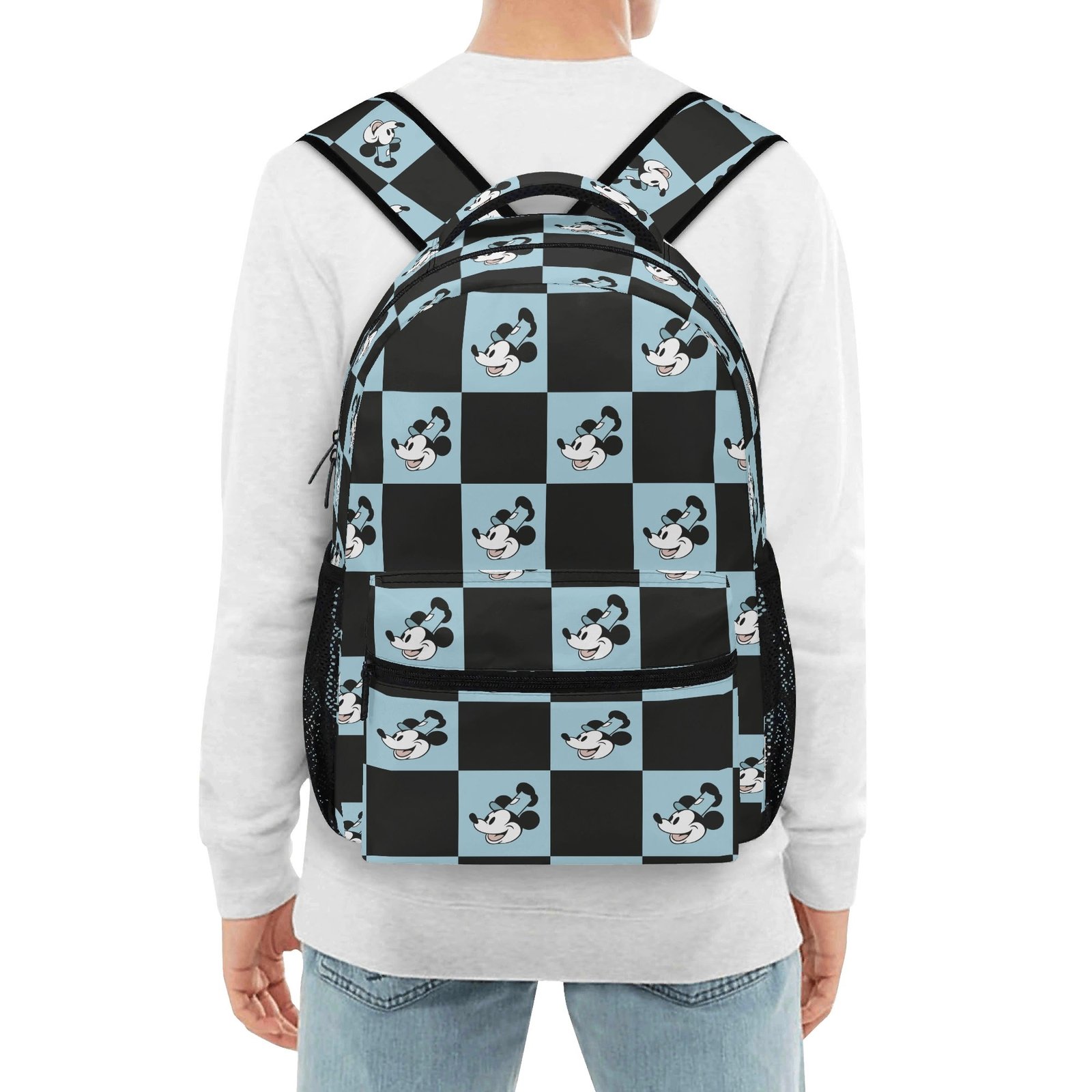 15 Inch Steamboat Willie Backpack in Blue and Black Checker