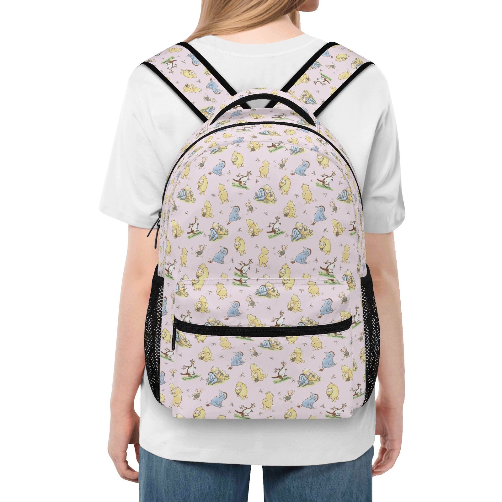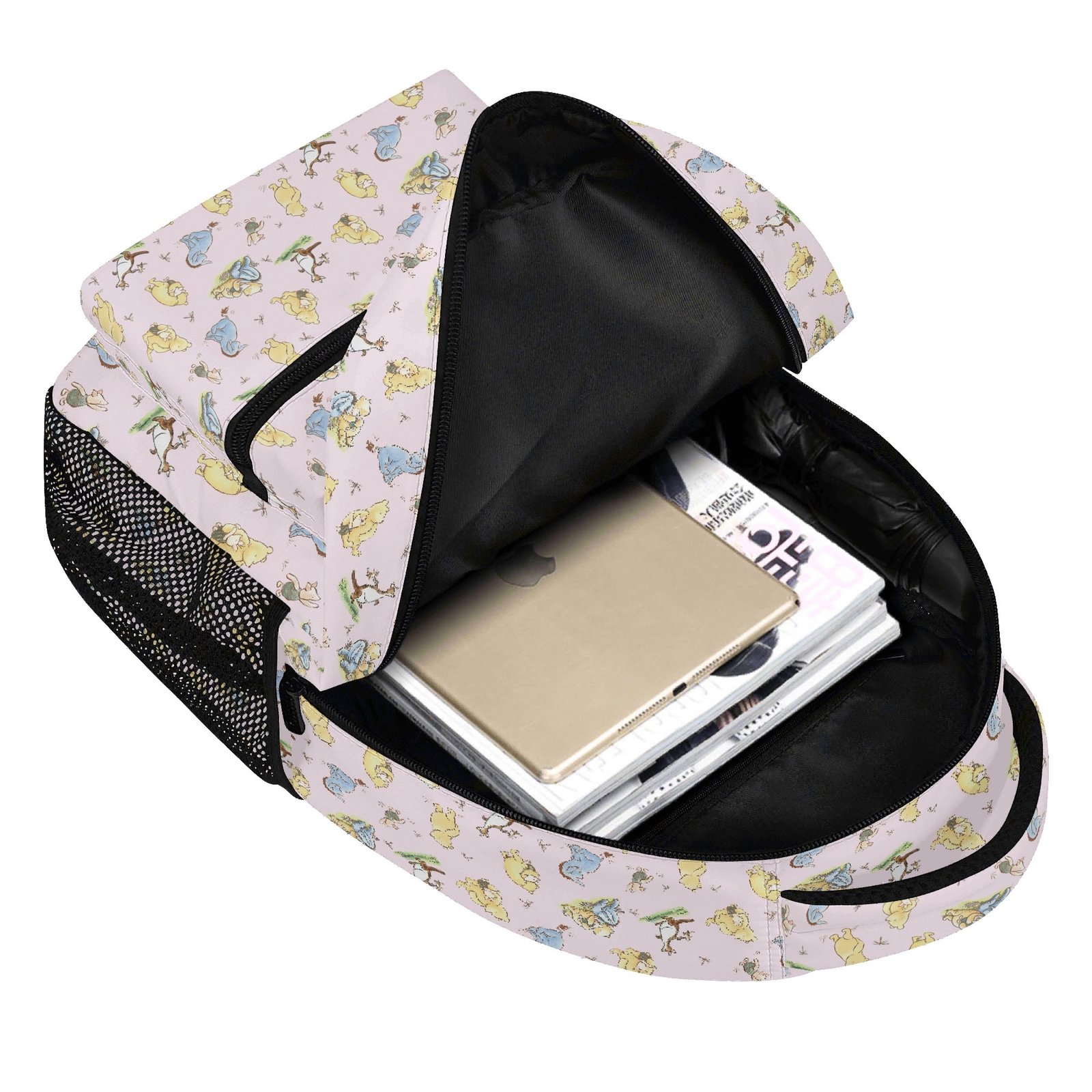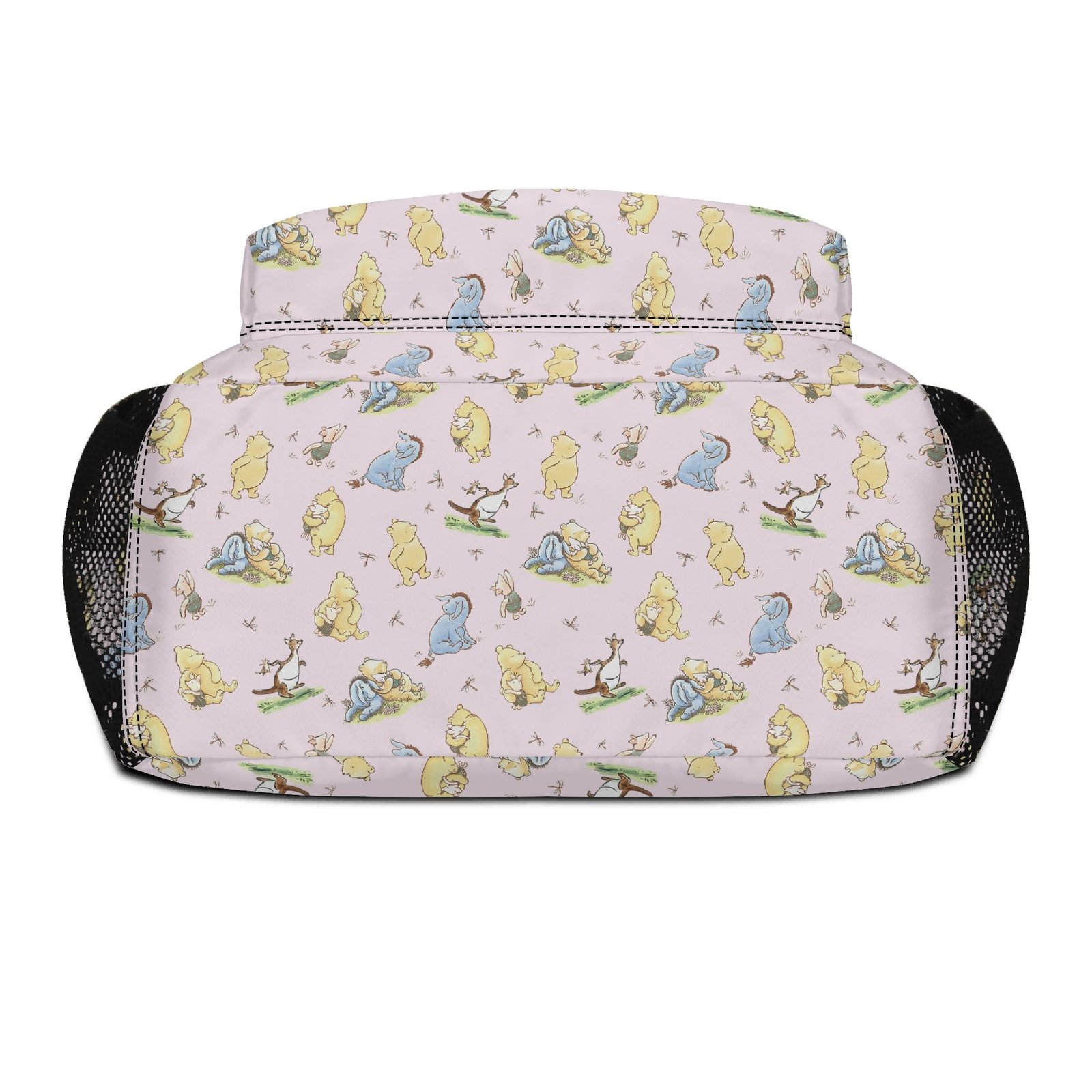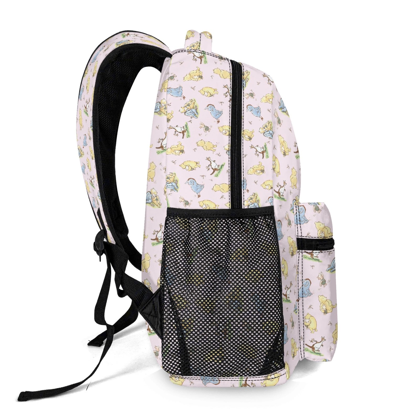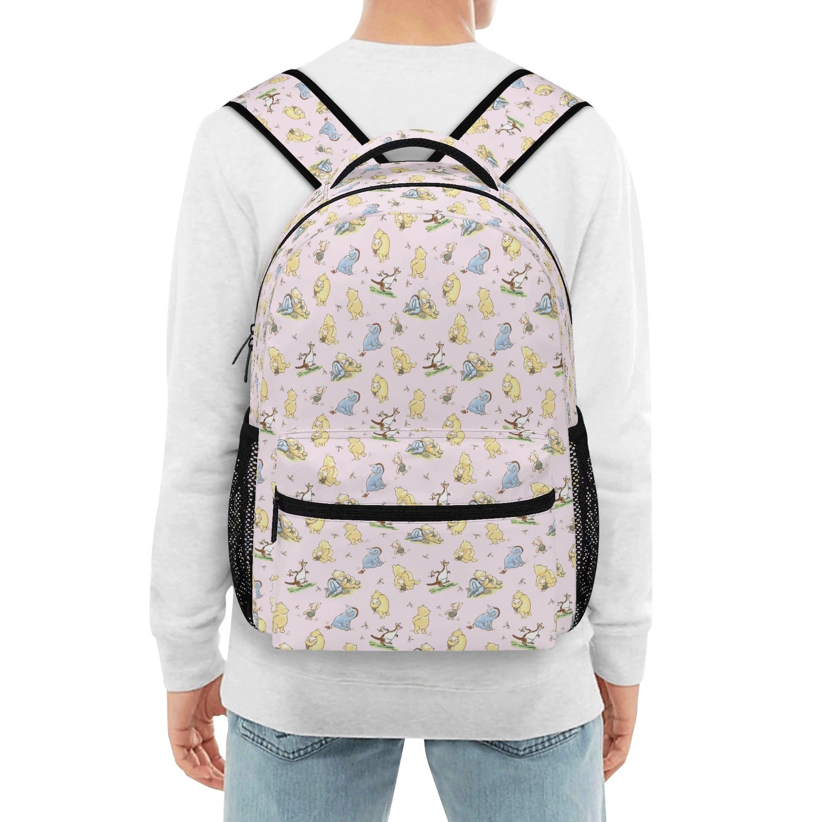 Winnie the Pooh backpack crafted from premium twill weave and polyester, it offers lightweight, water-resistant, and durable performance. Featuring multiple compartments and adjustable shoulder straps, it’s ideal for student travel, leisure, vacation, commuting and more. With measurements of 15.7” x 12” x 5.5” this backpack is not too big and not too small. Suitable for children, teens, and adults.