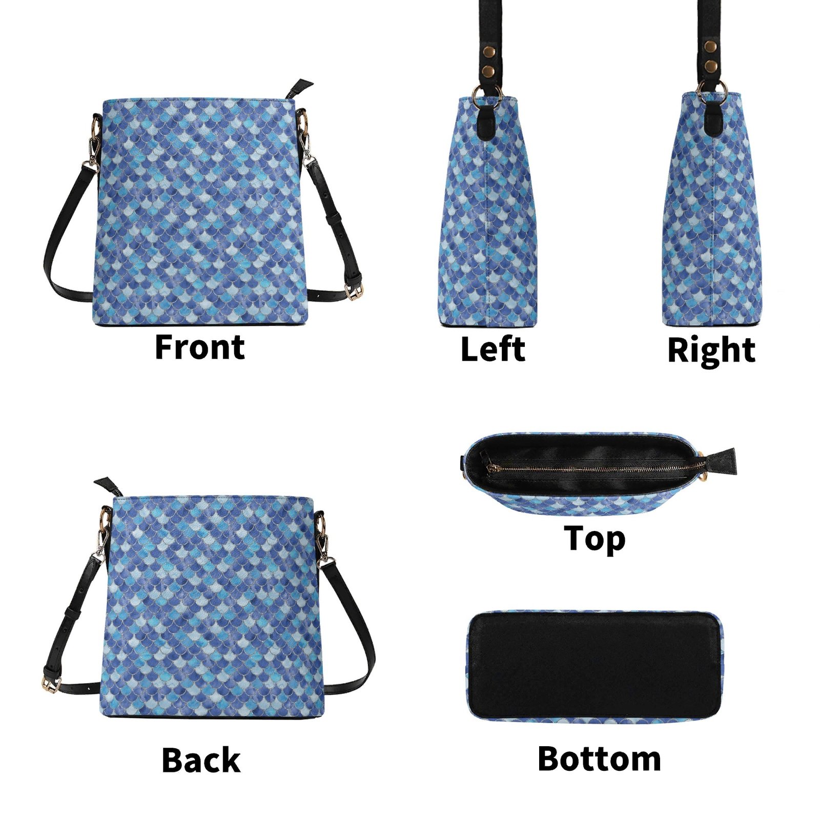 Dive into ocean-kissed elegance with this blue mermaid scale bucket bag, a statement accessory designed to catch every eye. Crafted from high-quality vegan leather and finished with an eye-catching mermaid scale print, this bucket bag blends fantasy with everyday practicality. Whether you’re heading out for brunch, errands, or a night by the sea, this bag brings a touch of magic to your look.