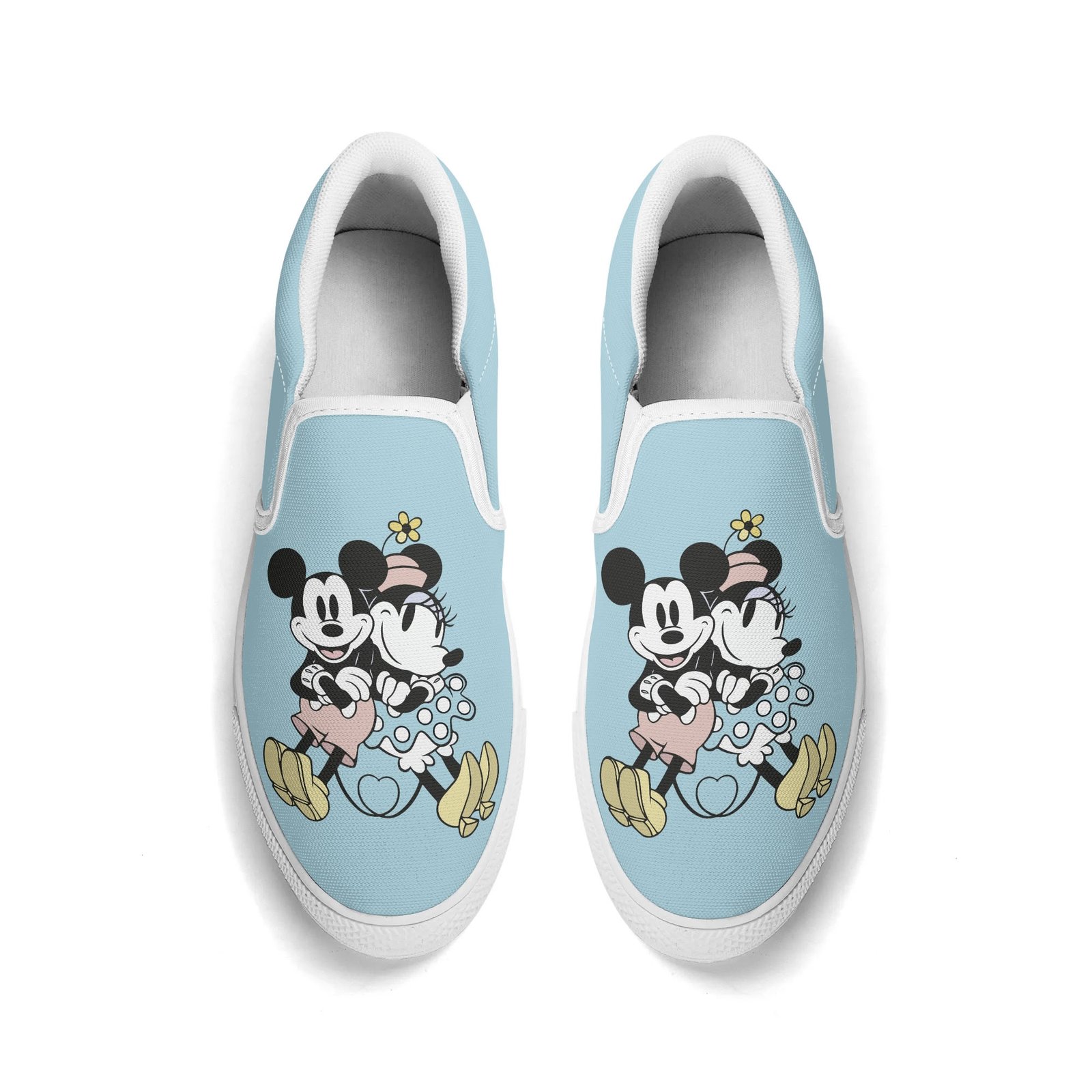 - Design: The print, featuring Steamboat Willie and the checkered pattern, gives these slip-ons a unique flair that pairs perfectly with all outfits. The elasticized side panels ensure an effortless slip-on design, so you can easily put them on and take them off with minimal effort.
