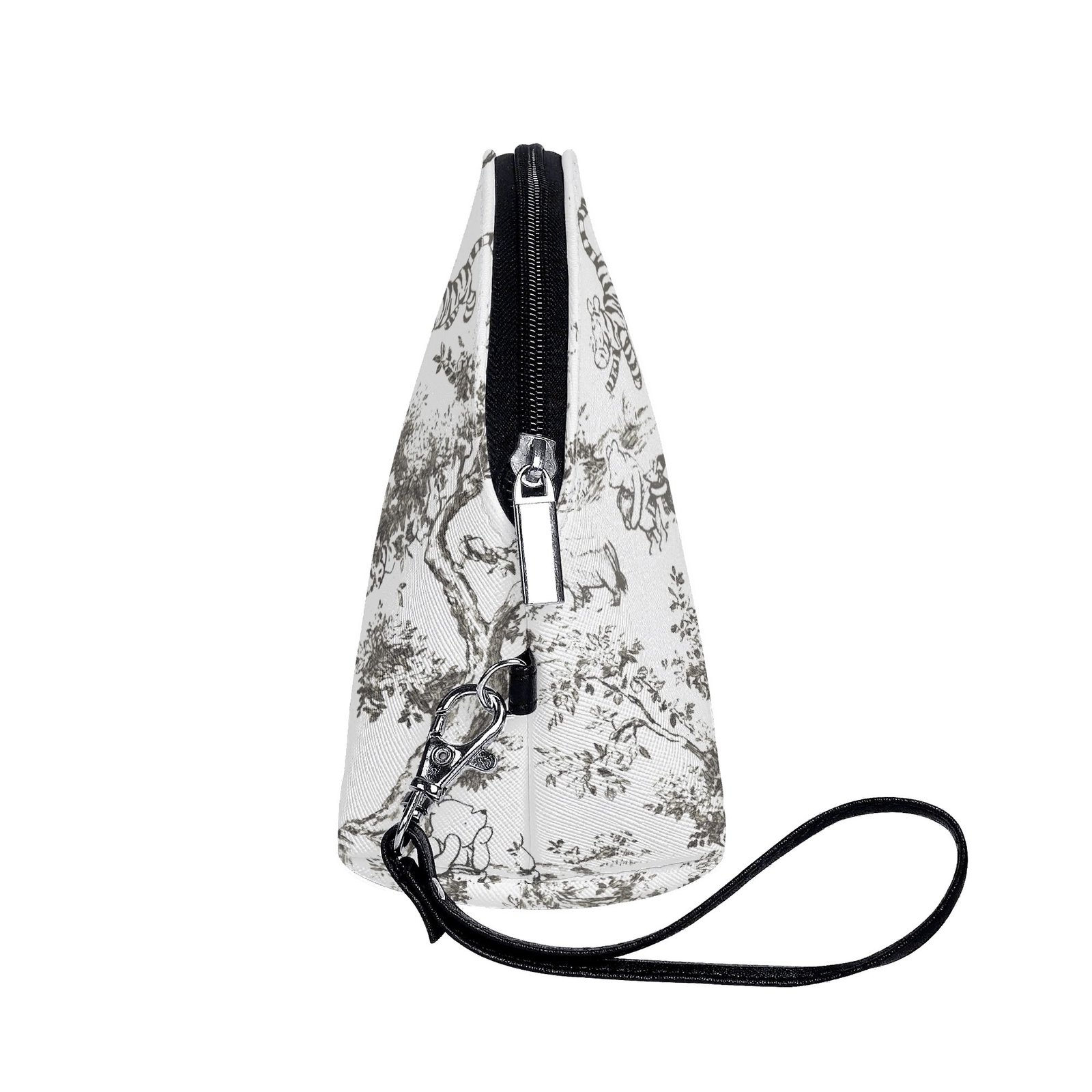 Made of high quality vegan leather, this curved Winnie the Pooh makeup bag is lightweight with a smooth zipper and removable handle for easy carrying. With a portable and oversized internal capacity, it easily accommodates a wide variety of cosmetics. Elevate your beauty routine with this stylish and functional accessory.