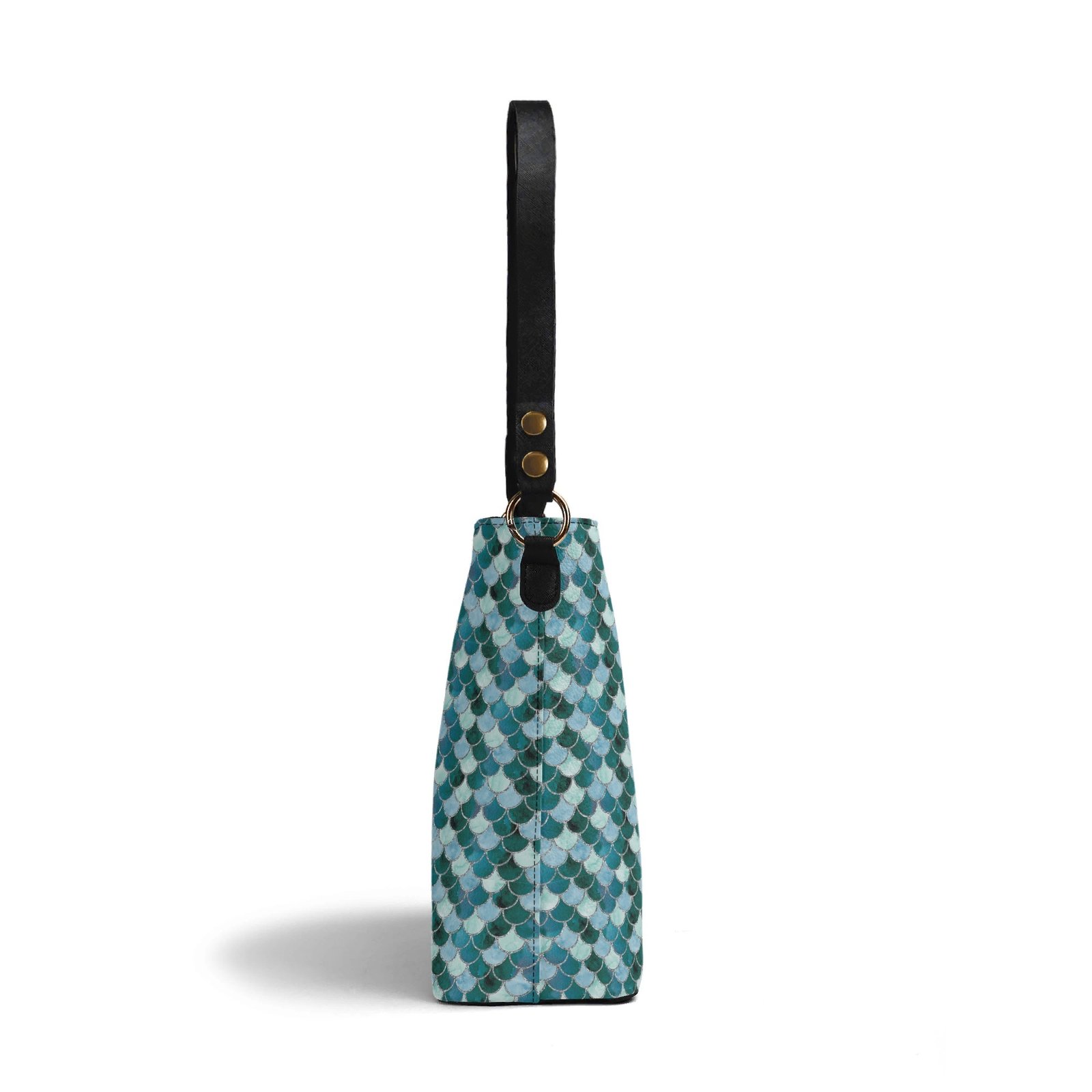 Dive into ocean-kissed elegance with this green mermaid scale bucket bag, a statement accessory designed to catch every eye. Crafted from high-quality vegan leather and finished with an eye-catching mermaid scale print, this bucket bag blends fantasy with everyday practicality. Whether you’re heading out for brunch, errands, or a night by the sea, this bag brings a touch of magic to your look.