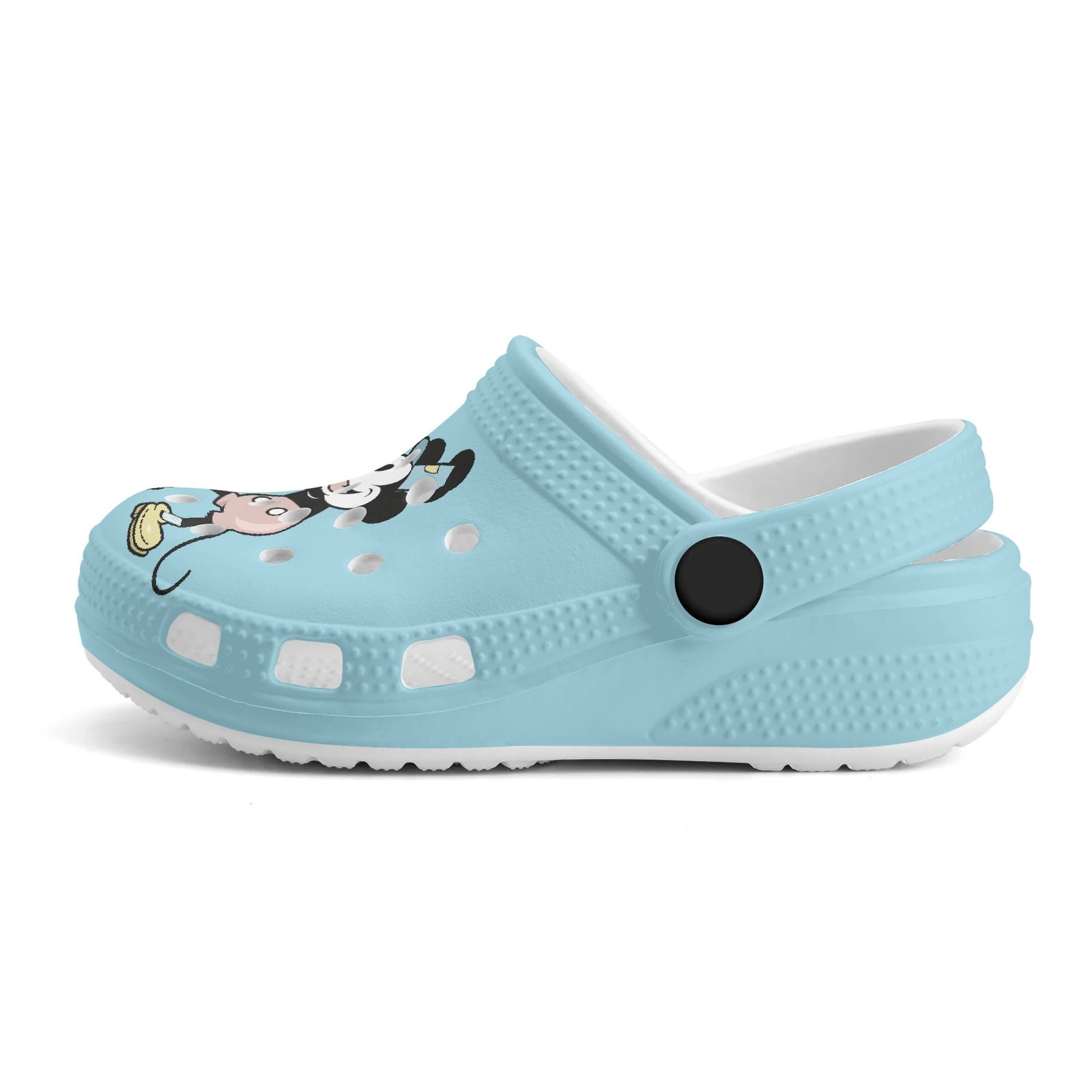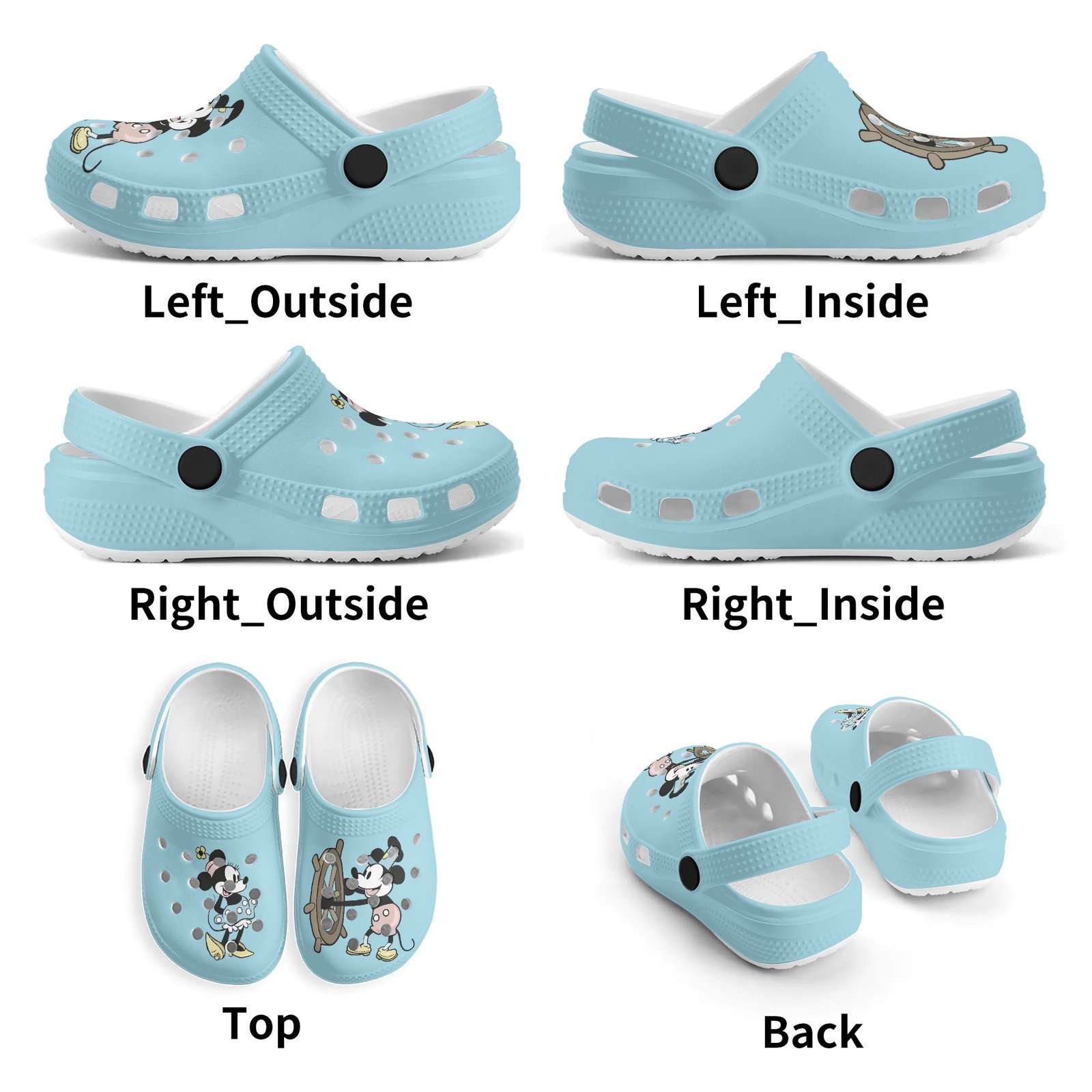 Let your little one stomp, splash, and play in style with these Kids’ Steamboat Willie Rubber Clogs — a must-have for any young Mickey Mouse fan! Featuring the iconic vintage Steamboat Willie print, these fun and functional kids’ rubber clogs bring classic cartoon charm to everyday adventures.