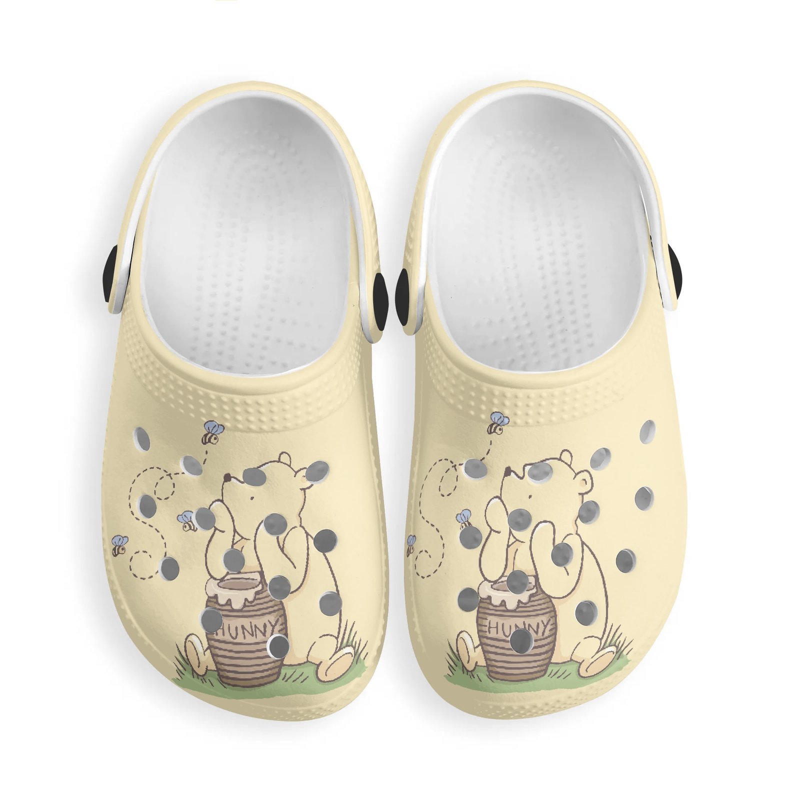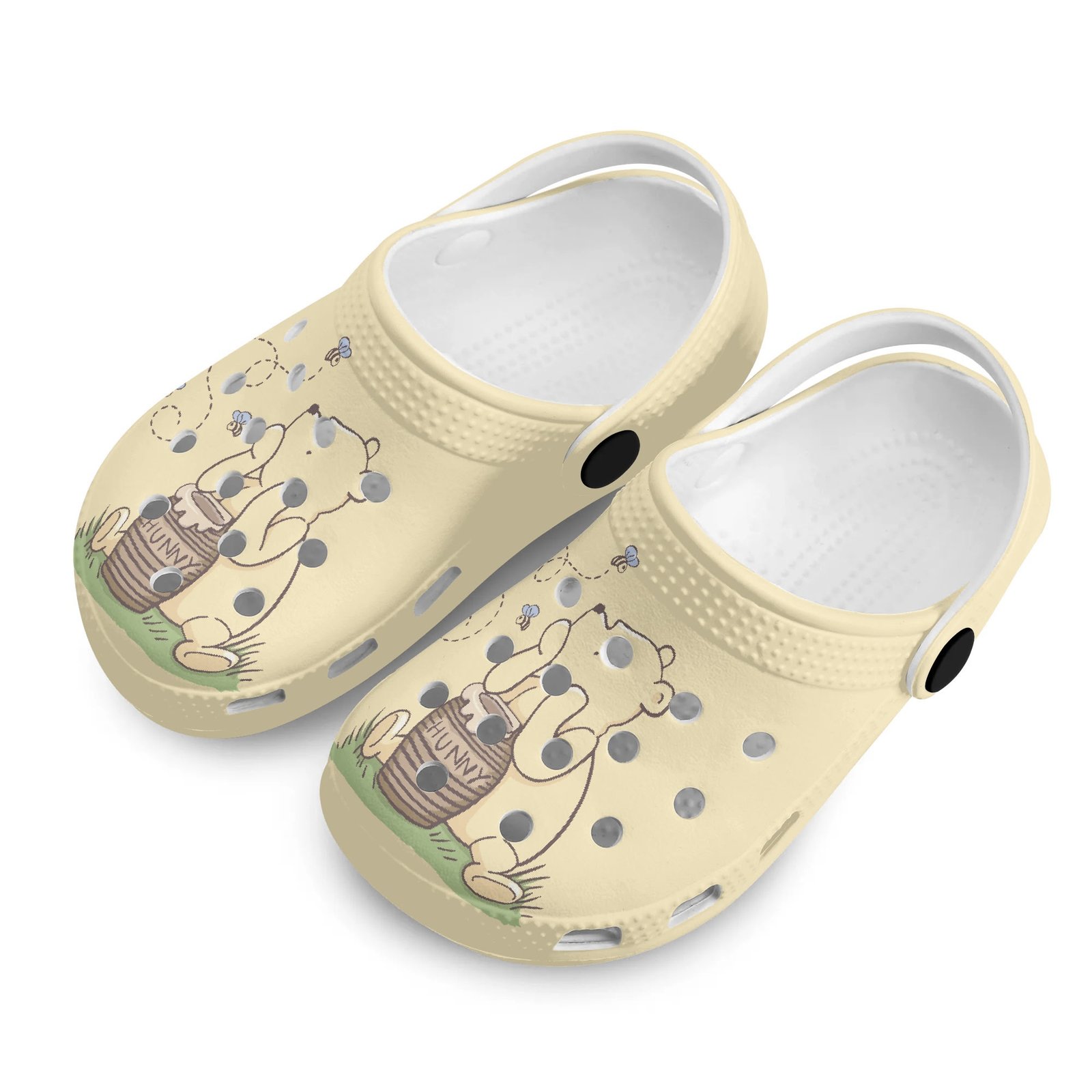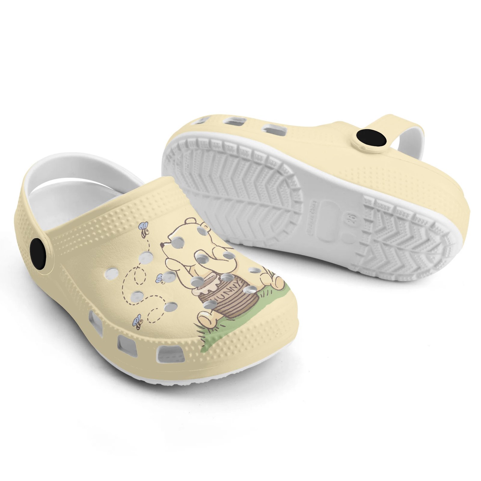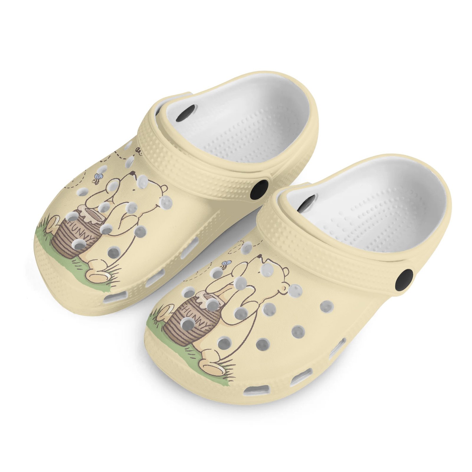 Does your little one love Winnie the Pooh? These Kids’ Winnie the Pooh Shoes in Yellow are the cutest, most comfortable pair of character clogs you’ll find — and they’re ready for every adventure from the backyard to the beach. Whether you’re searching for kids’ Winnie the Pooh clogs, toddler character shoes, or just the most adorable pair of rubber slip-ons your child will refuse to take off, you’ve found them.