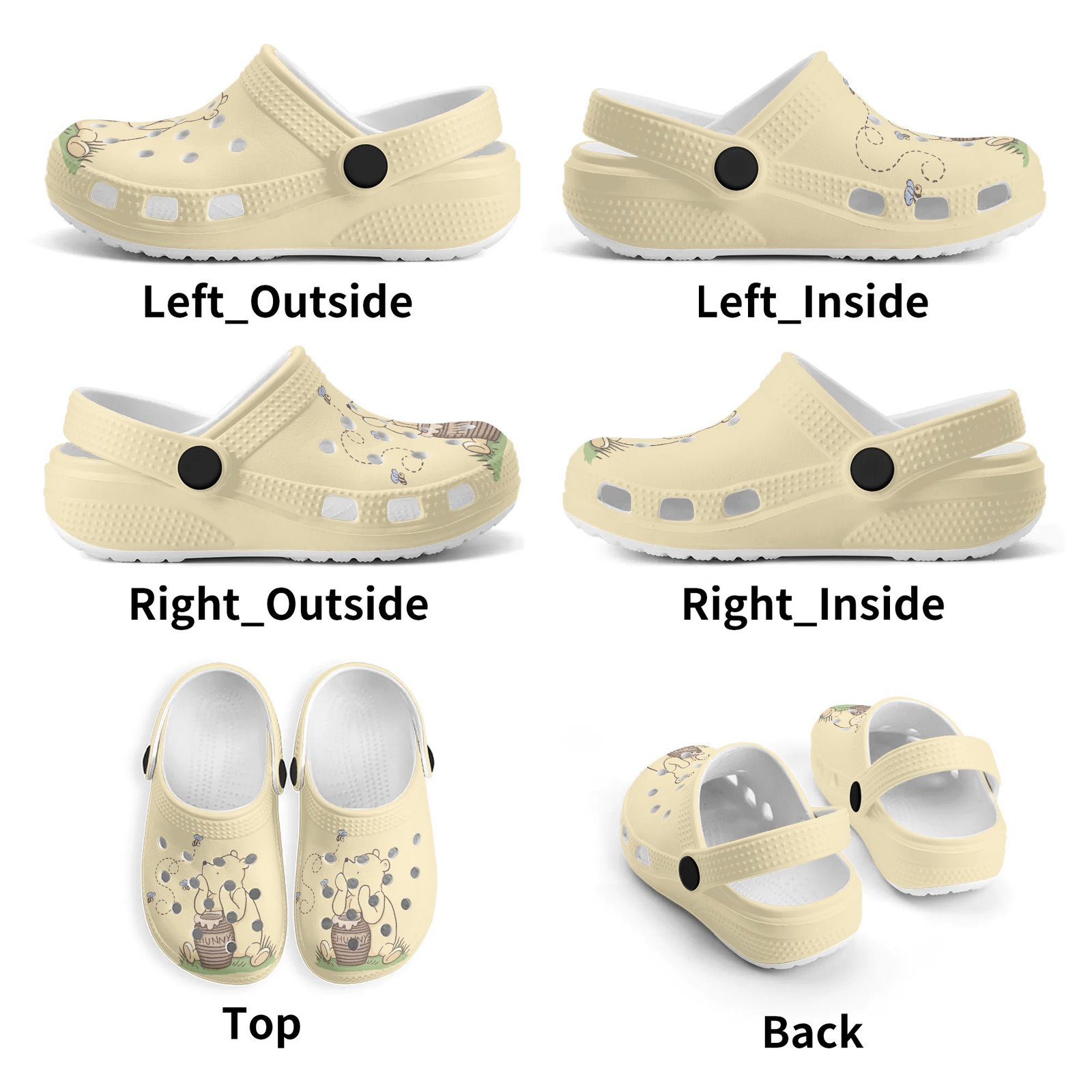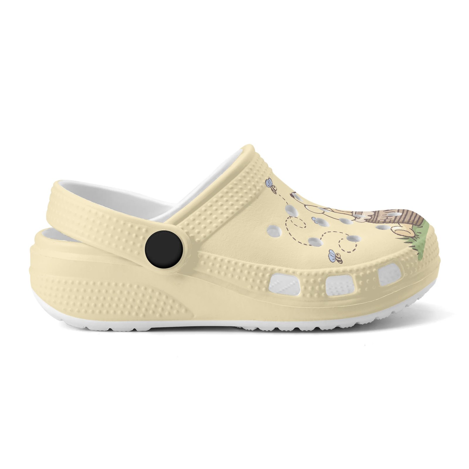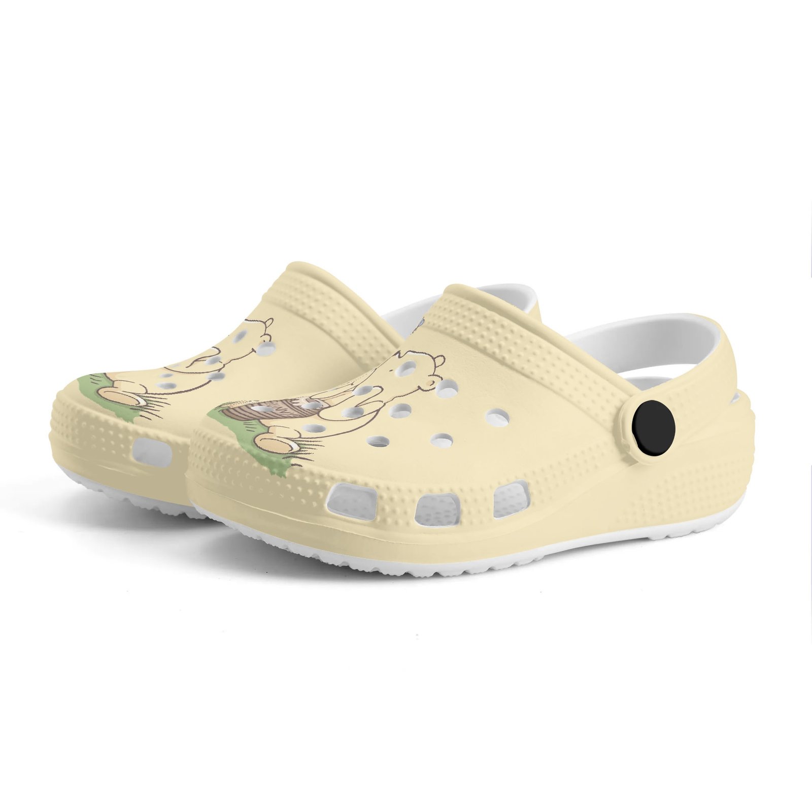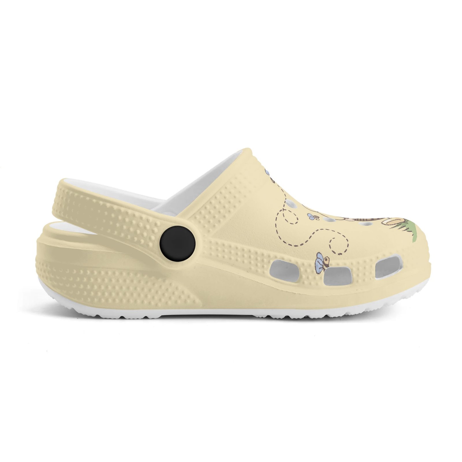 These kids’ Winnie the Pooh clogs are crafted from premium EVA (ethylene-vinyl acetate), the same lightweight, flexible, and shock-absorbing material used in high-quality footwear around the world. EVA rubber is soft enough to cushion little feet all day long, durable enough to handle rough play, and completely water-resistant — making these the ideal kids’ outdoor shoe for warm-weather adventures.