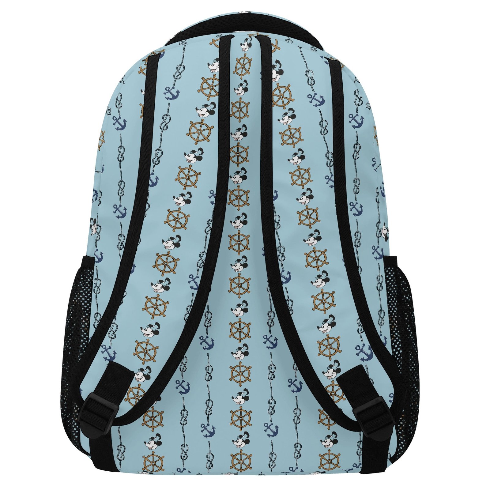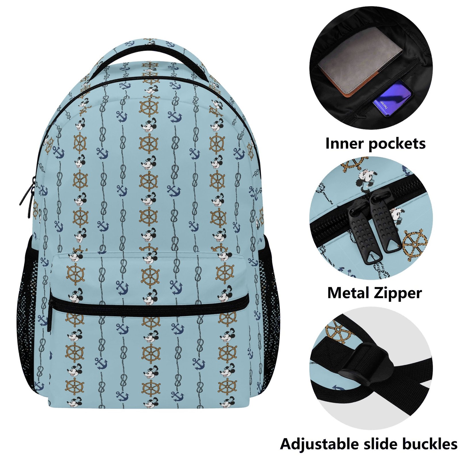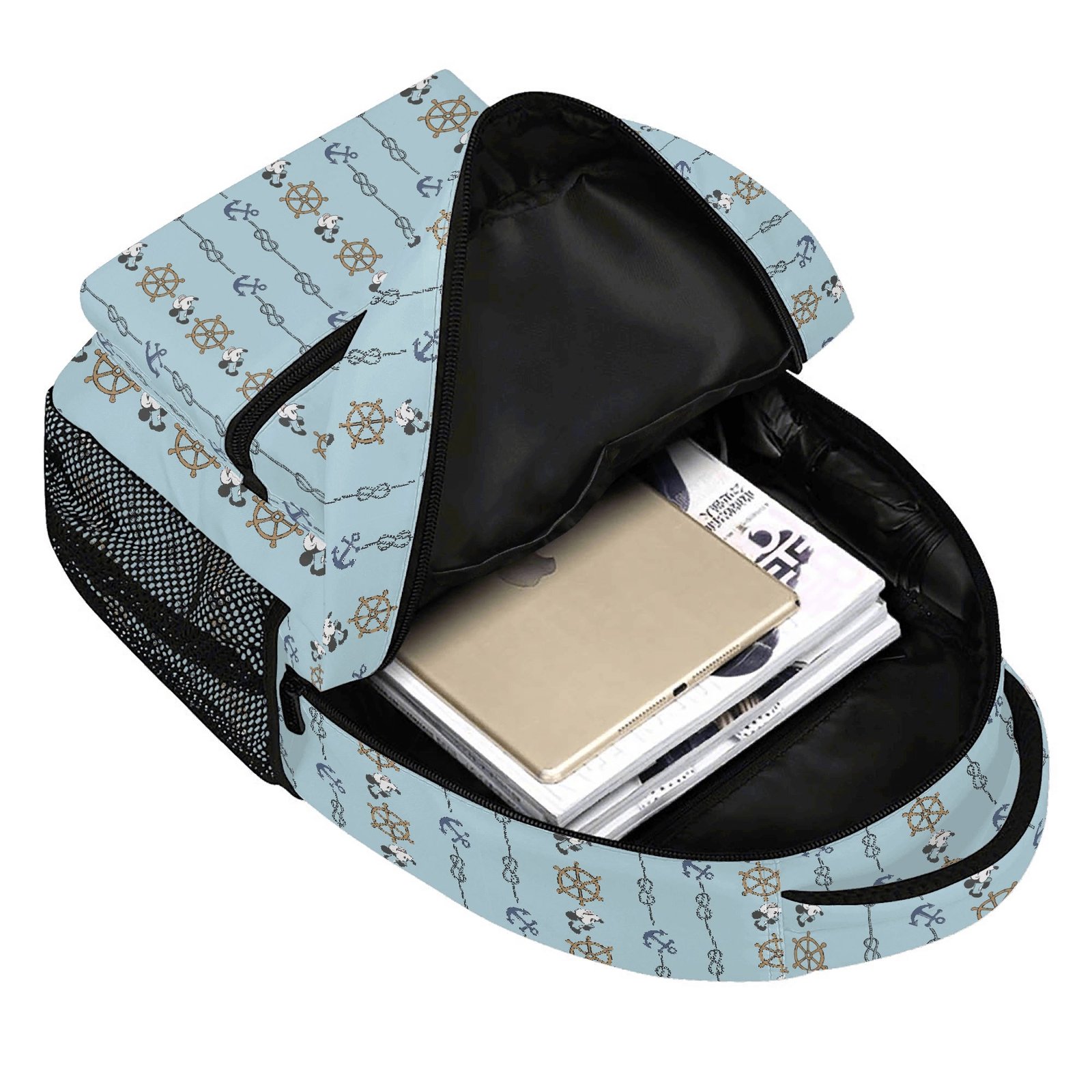 Steamboat Willie backpack crafted from premium twill weave and polyester, it offers lightweight, water-resistant, and durable performance. Featuring multiple compartments and adjustable shoulder straps, it’s ideal for student travel, leisure, vacation, commuting and more. With measurements of 15.7” x 12” x 5.5” this backpack is not too big and not too small. Suitable for children, teens, and adults.