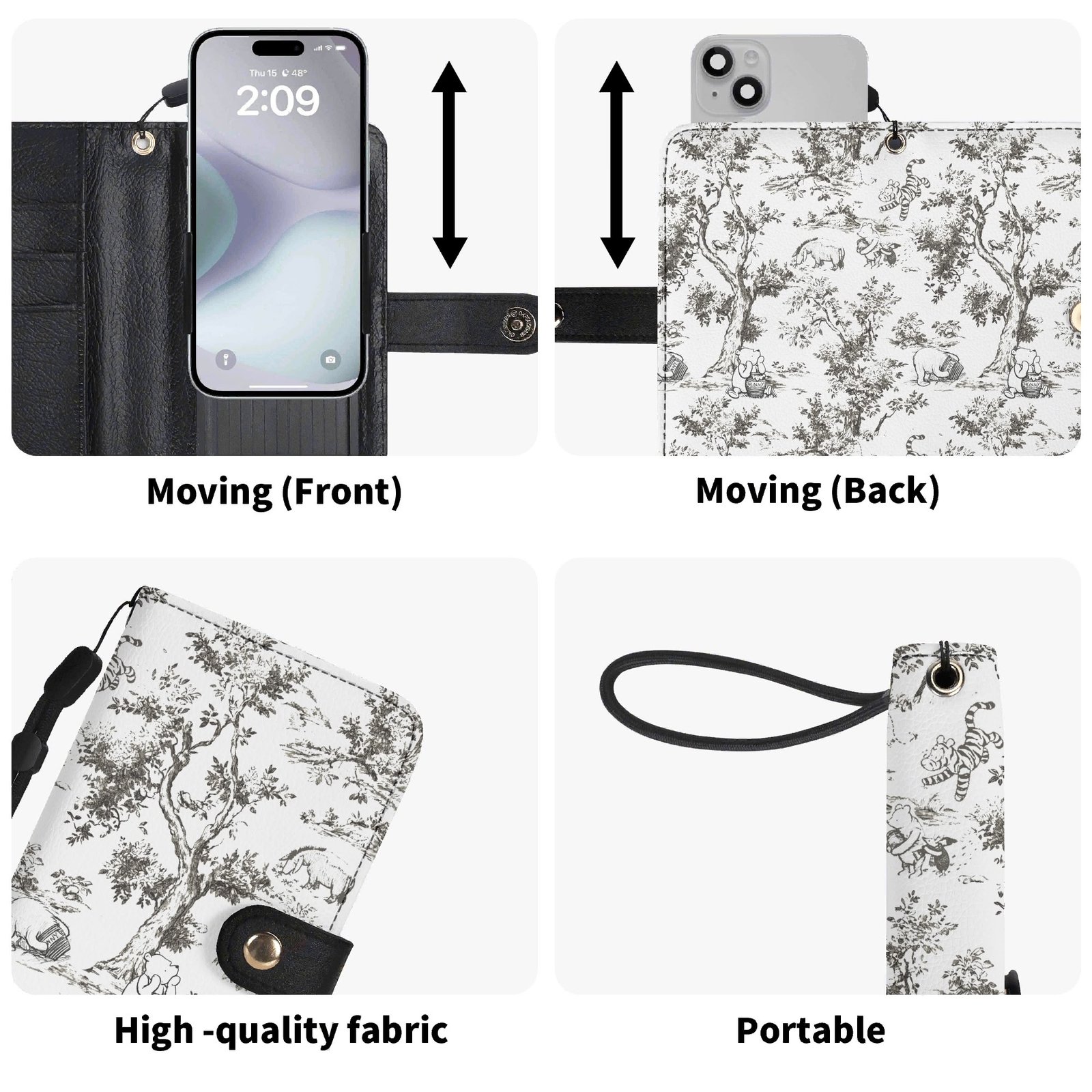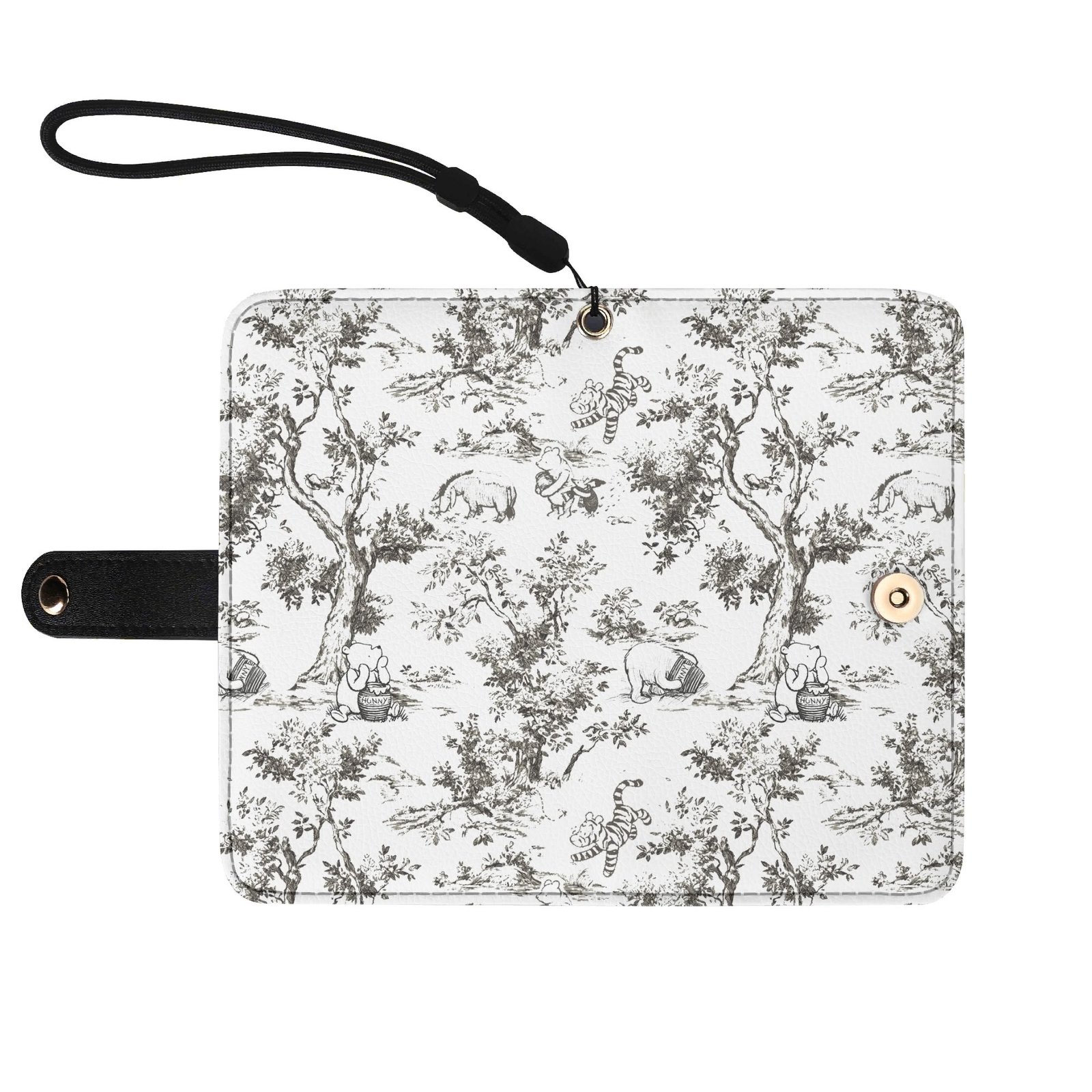 Winnie the Pooh Phone Wallet in Romantic, Pastoral Black and White Toile de Jouy