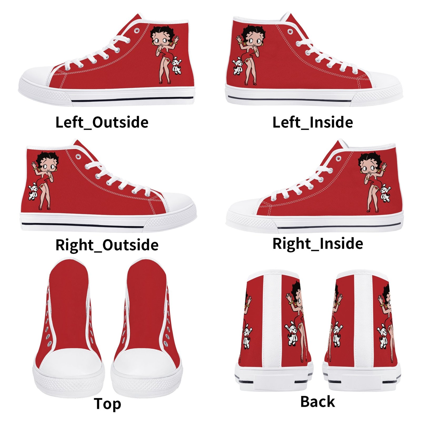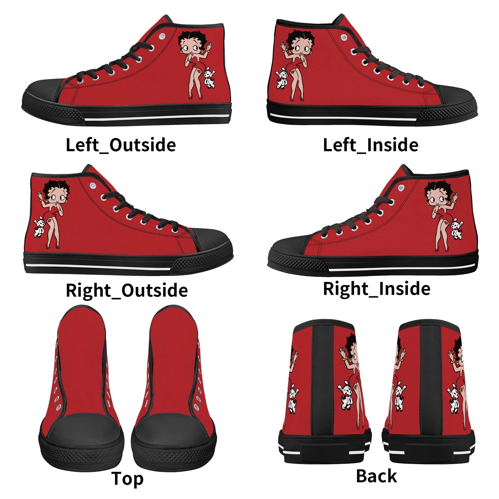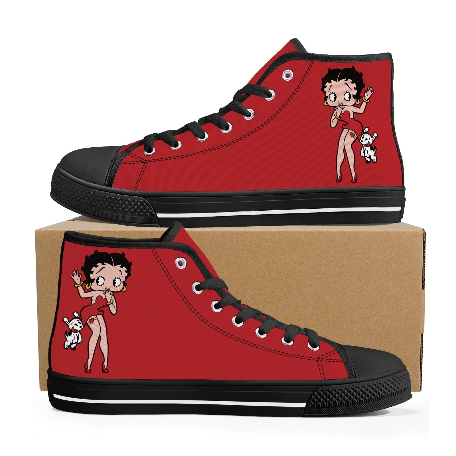 Featuring a vibrant red base and eye-catching Betty Boop design, these shoes bring classic cartoon flair to your casual wardrobe. Whether you’re dressing up a laid-back outfit or adding personality to your streetwear style, they deliver standout appeal with a fun, retro edge.