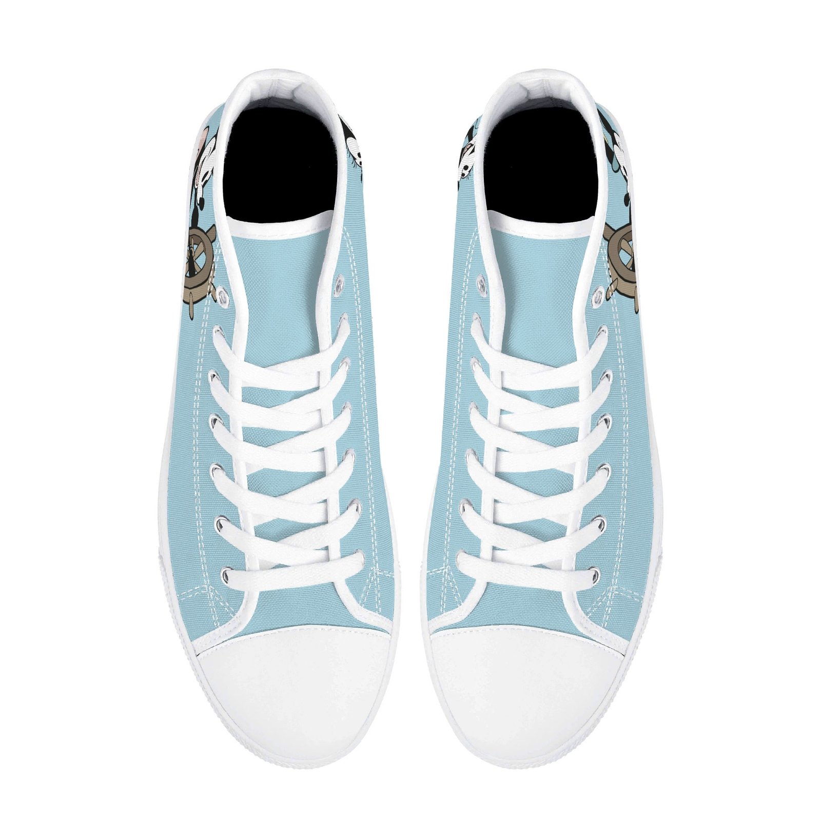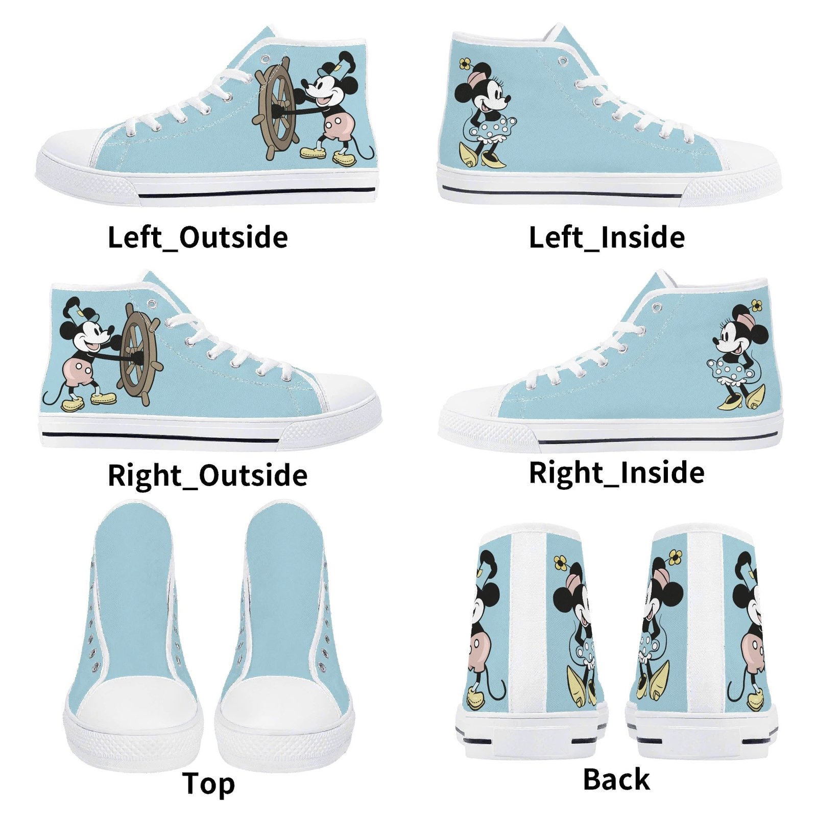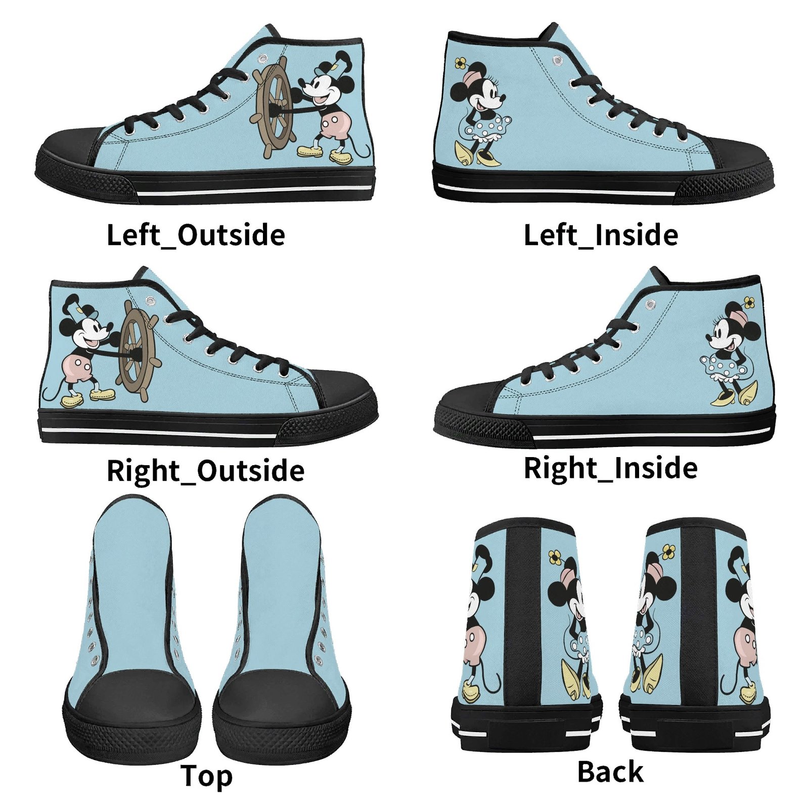 Step into a little magic and adventure with these Steamboat Willie women’s high top canvas shoes, designed to turn everyday outfits into a story worth telling. Featuring a charming nautical theme, the iconic mouse takes the helm of a ship on the outer side, while his female other half appears on the inner side, creating a playful, collectible-style design that feels special from every angle.