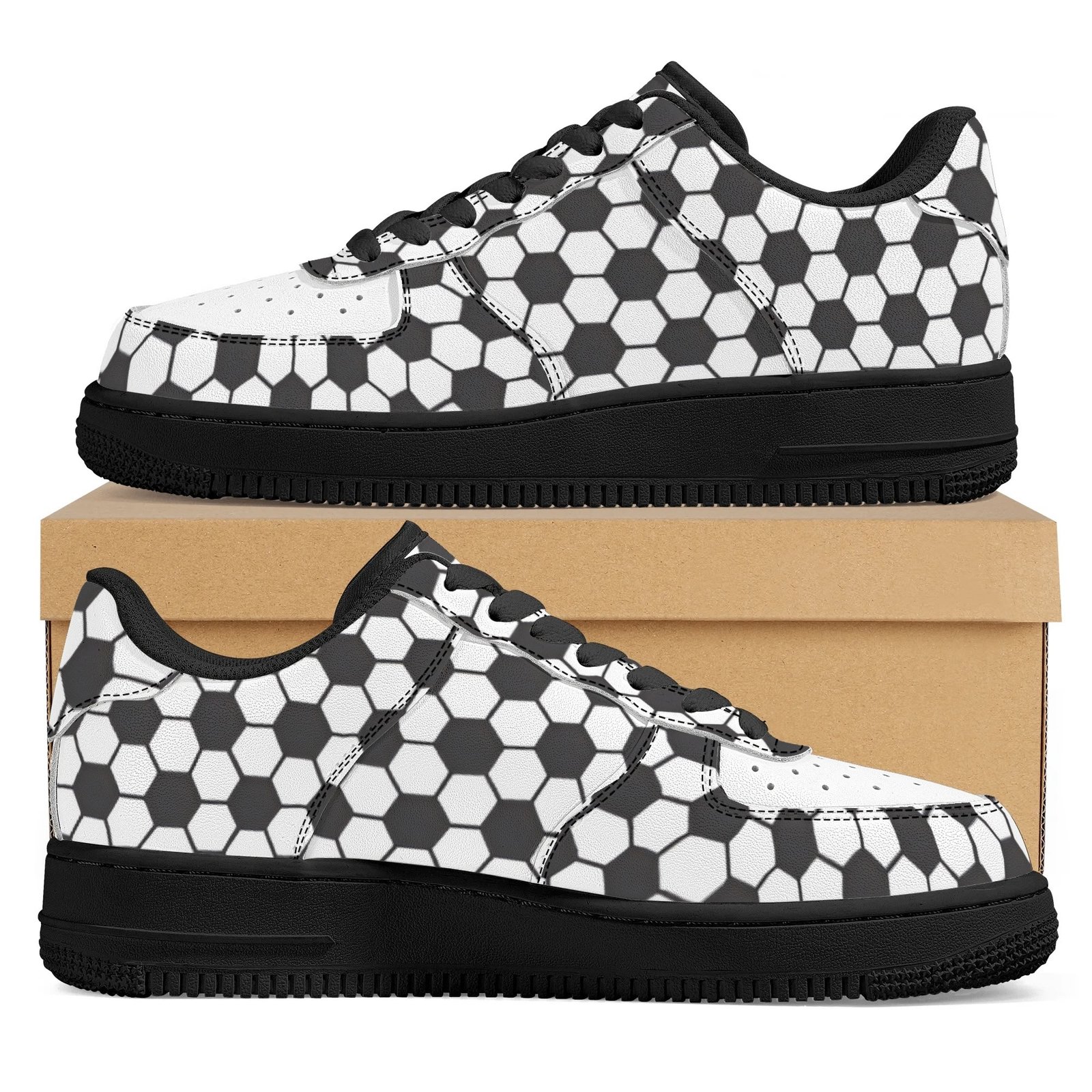 Show your love for the beautiful game with these soccer ball print sneakers, designed for sports fans who want to bring their passion for soccer into everyday fashion. Featuring a bold soccer ball pattern and sleek modern design, these sneakers combine sporty style with comfort and durability.