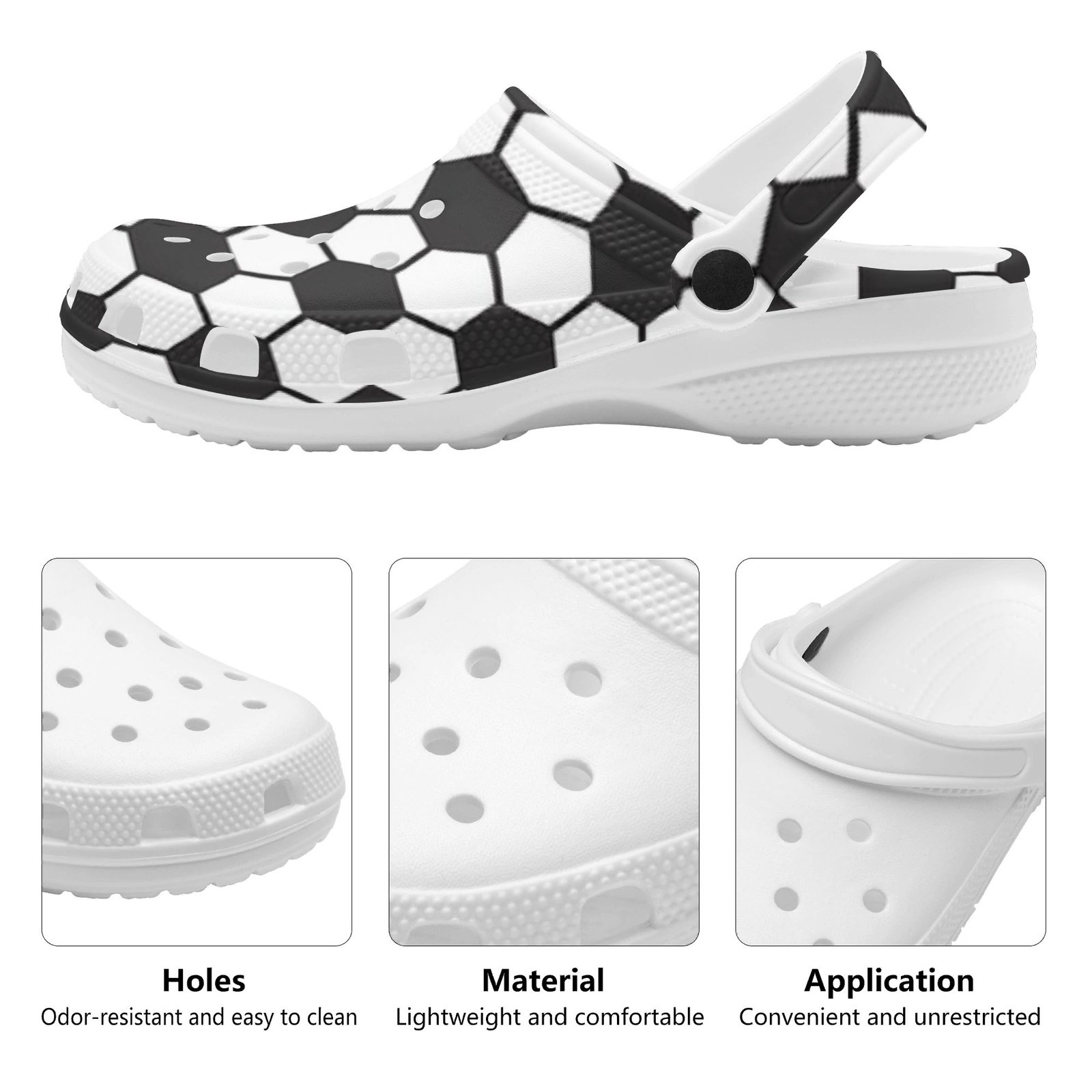 Versatile, comfortable, and full of personality, these soccer ball print clogs are a must-have for sports lovers who want comfort without compromising on style.