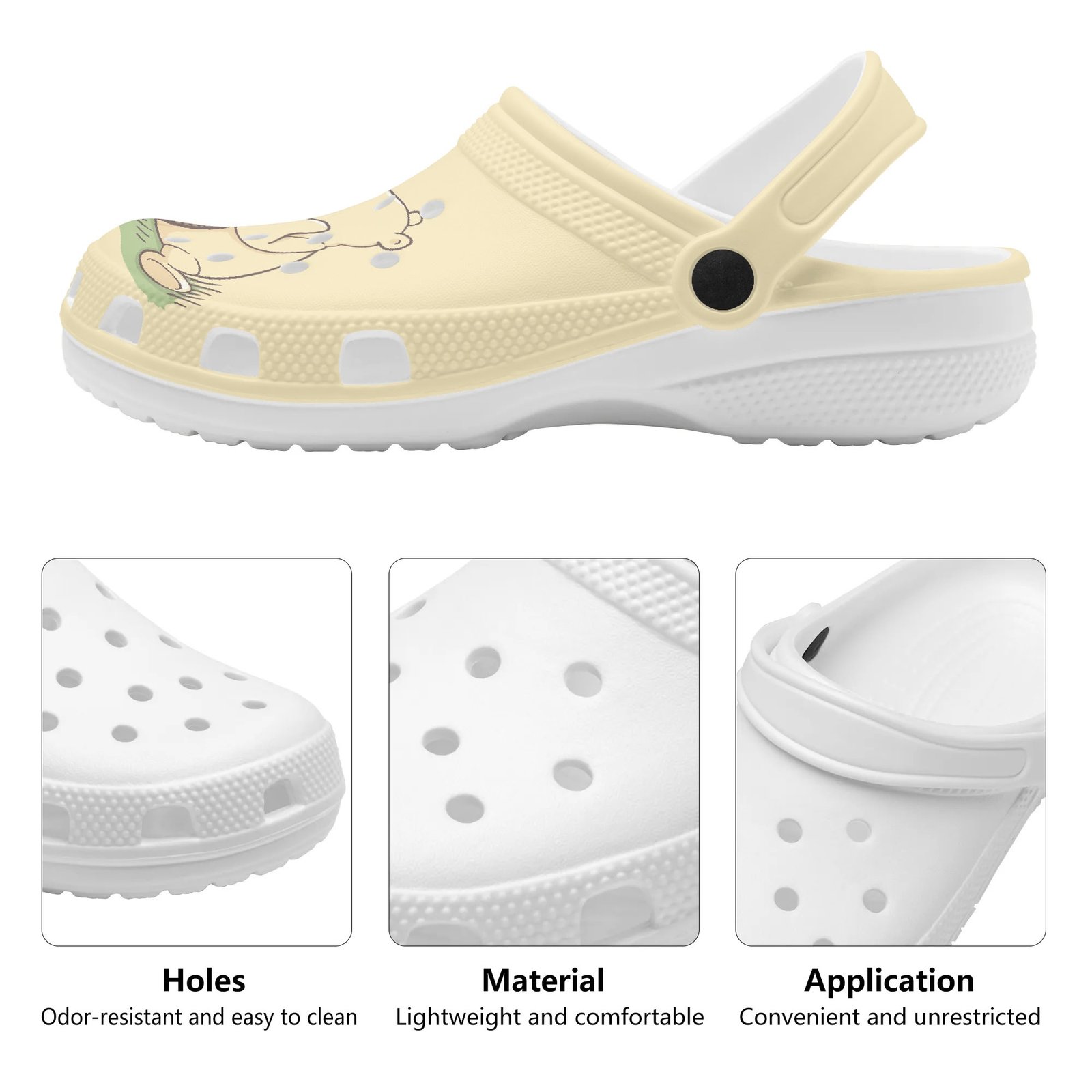 These eye-catching yellow clogs feature all-over sublimation printing inspired by everyone’s favourite honey-loving bear. The vibrant Winnie the Pooh design wraps the entire shoe — top, sides, and strap — so every angle shows off your love for this classic Disney character. The cheerful yellow colour perfectly captures Pooh’s signature look, making these clogs an instant conversation starter wherever you wear them.